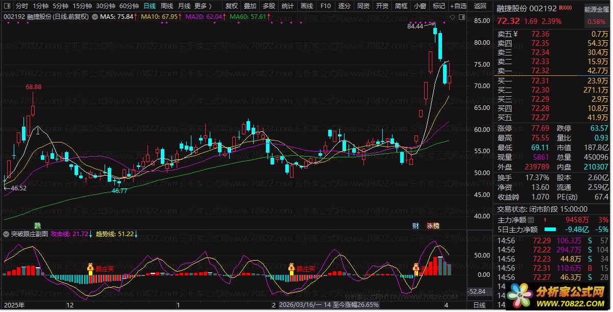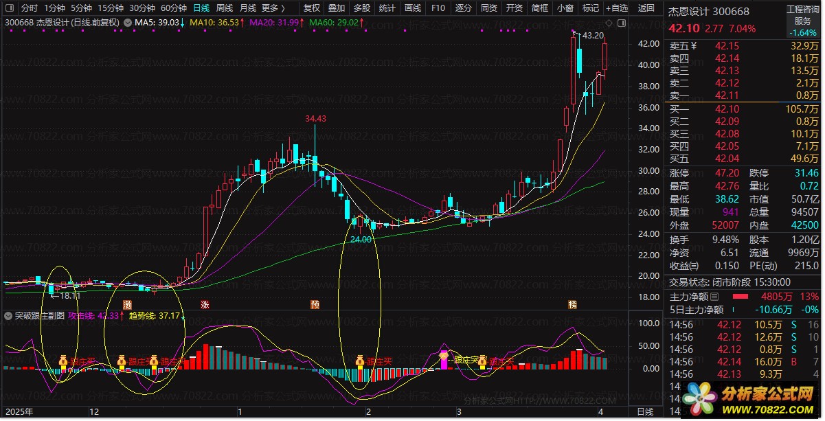 〖突破跟庄副图〗主力动向监控——股票指标公式实战利器 本公式融合MACD、RSI及价格趋势分析,精准识别主力资金动向。