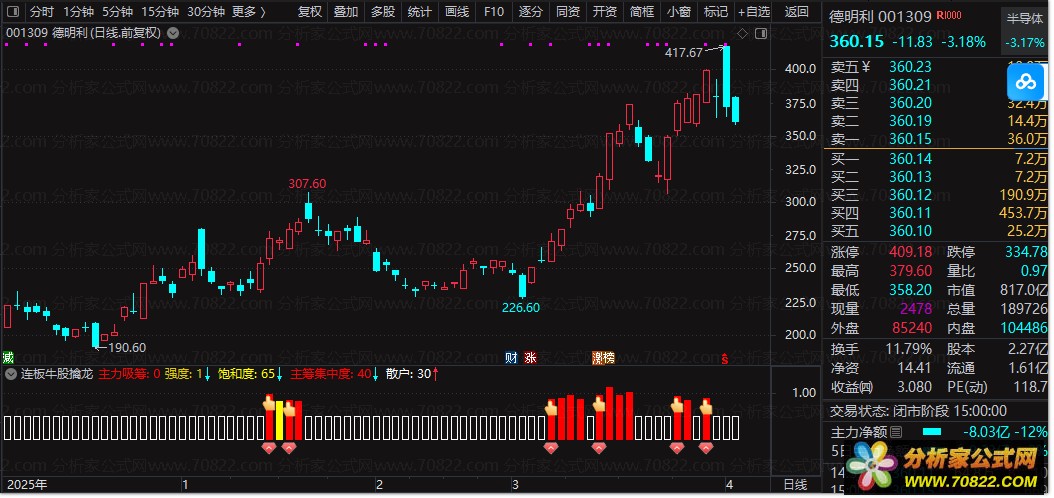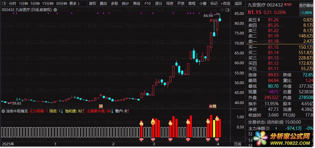 本公式适用于通达信软件,支持条件选股与副图叠加,帮助投资者在复杂市场中精准锁定主力动向,把握连板牛股的起爆先机。