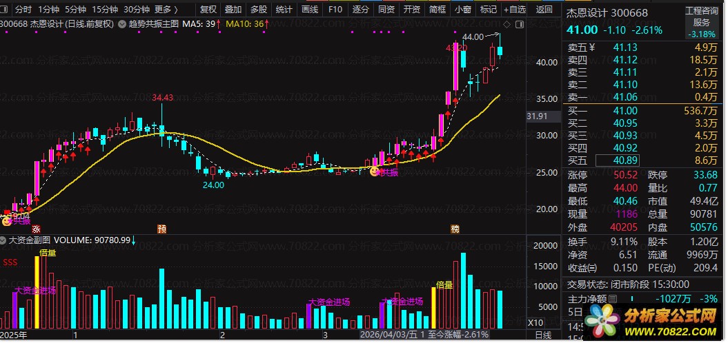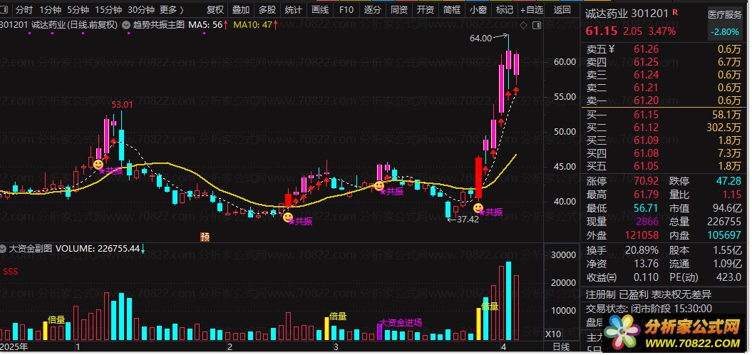 当主图出现醒目的“★共振”信号及变色K线时,意味着短期动能、中期趋势与主力资金达成高度一致,是极佳的波段起爆点。该指标能有效过滤市场噪音,帮助你在主升浪启动前果断介入,让持股变得简单而从容。
