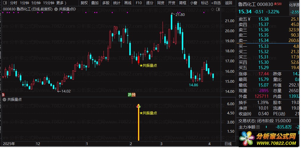主图/副图叠加:将主图或副图公式导入,当K线出现“★共振量点”红色标记时,代表个股在上升趋势中完成了洗盘,且主力资金开始重新发力,是极佳的介入时机。