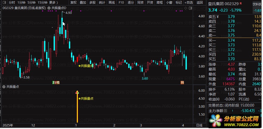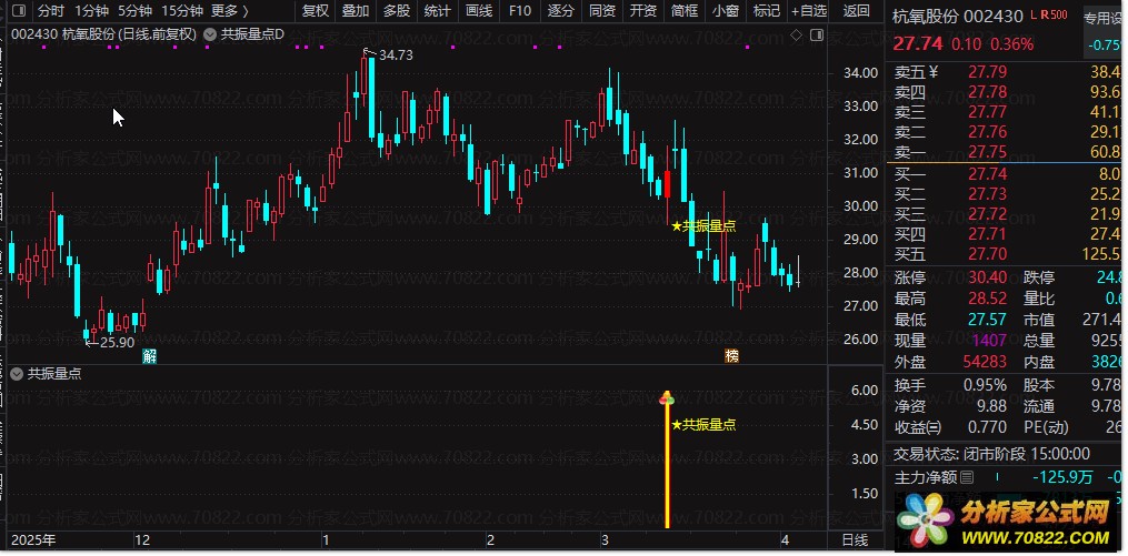 选股策略:利用共振量点选股公式进行盘中或盘后扫描。选出的个股通常具备“急跌慢涨”后的反转特征,建议结合板块热点,在信号出现当日或次日回踩时低吸,博取短线爆发收益。