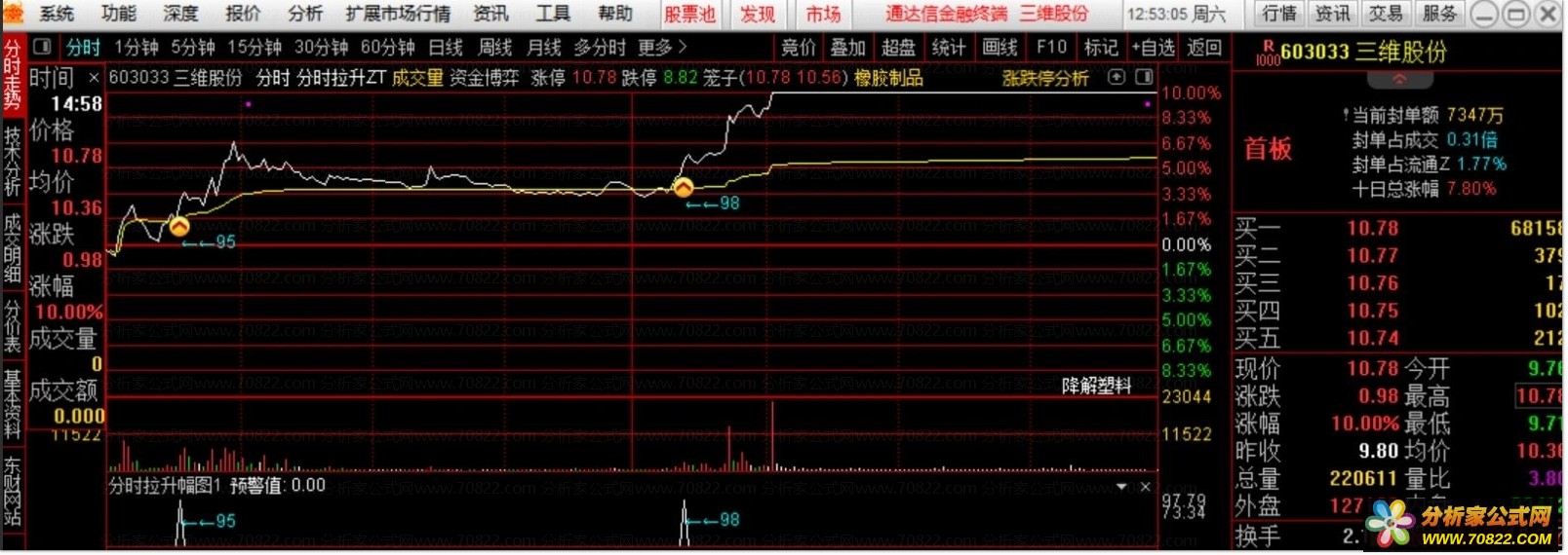 2 . 通达信没有分时周期选股或者预警功能,所以本指标分时信号不能做预警选股。