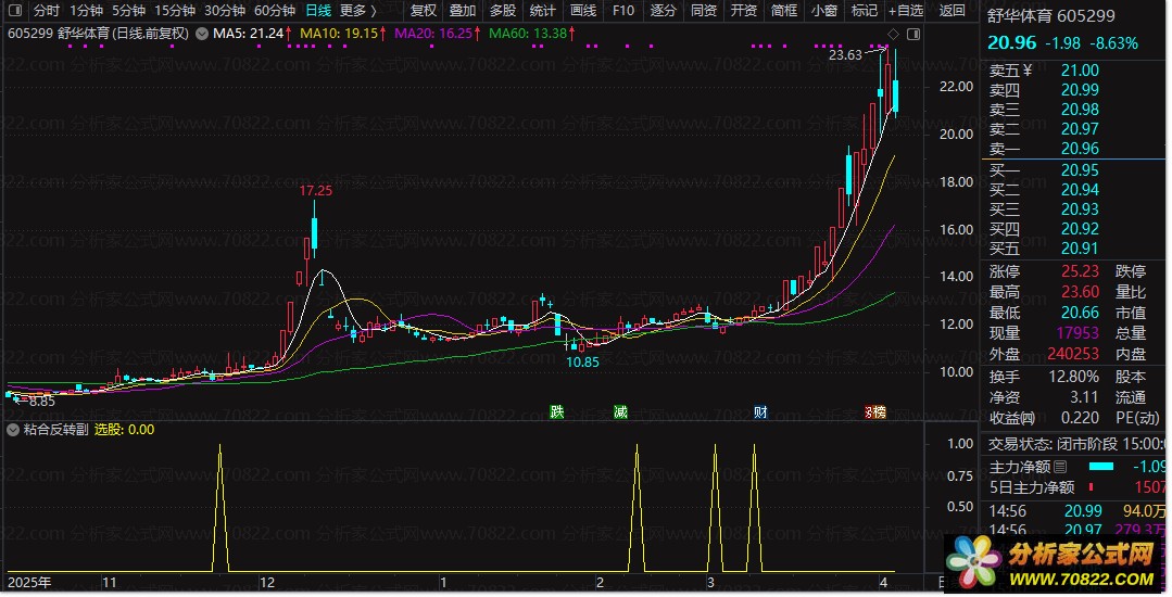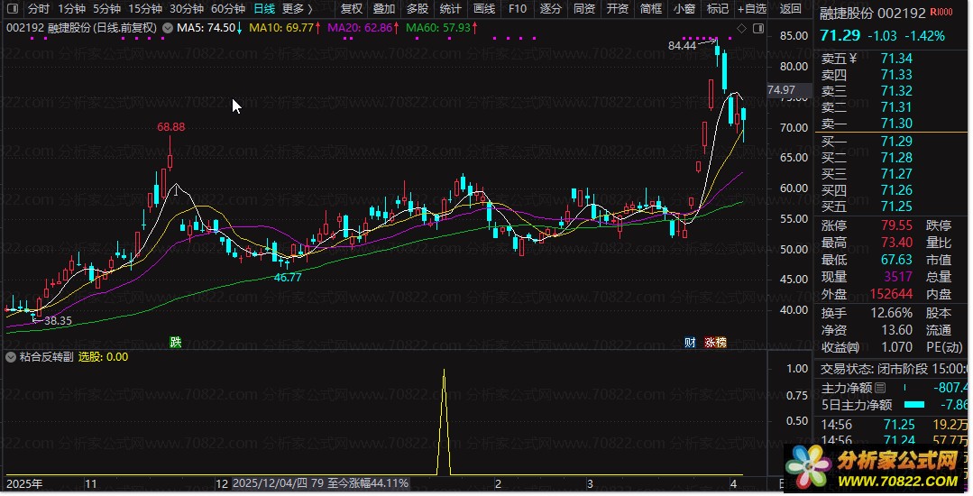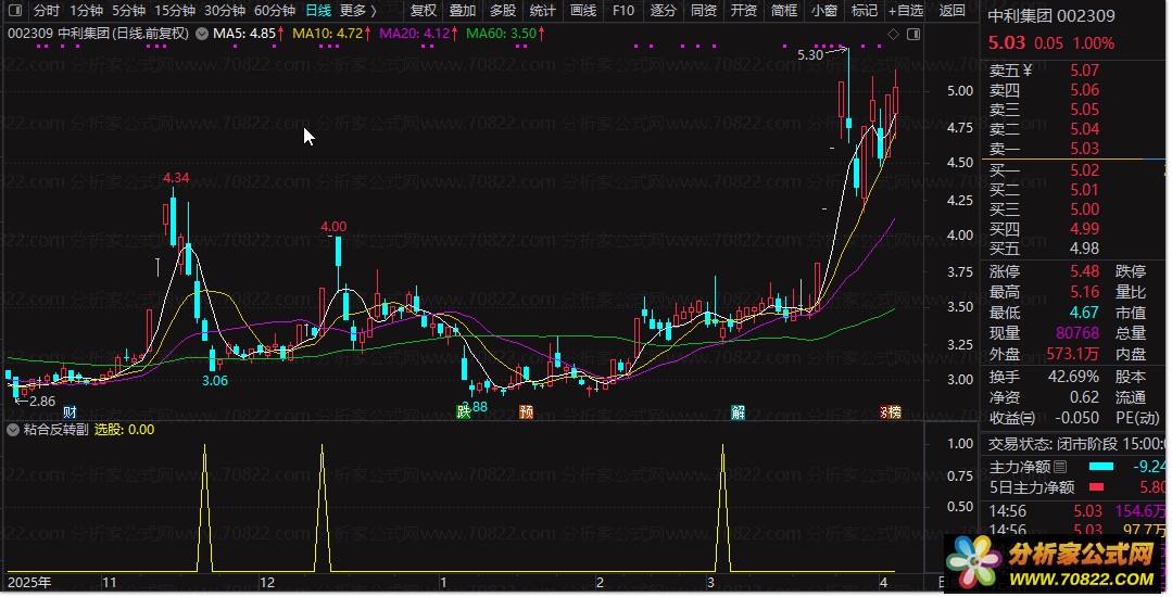 通达信“粘合反转”指标套装,捕捉起爆前夜 “粘合反转”是一款基于MACD变体设计的趋势共振选股公式。该指标核心逻辑在于捕捉股价在多头趋势中的“空中加油”形态,属于高胜率的短线爆发点捕捉指标。