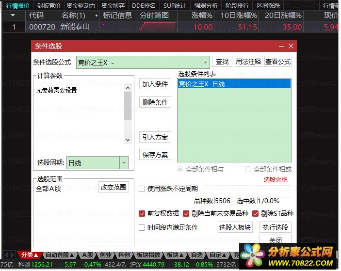 选股时间:在每个交易日的9:25至9:30之间排序或者选股都可以。