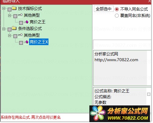 * 关于股票公式时间限制,如果在引入大智慧公式,交易师公式或者飞狐公式的时候,发现公式名称栏是空白的,这时候调整电脑时间到1997年,又能出现公式名称,并且能正常显示,可能是公式使用期限已过。