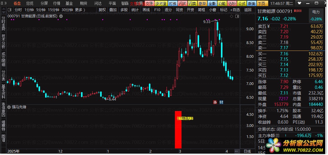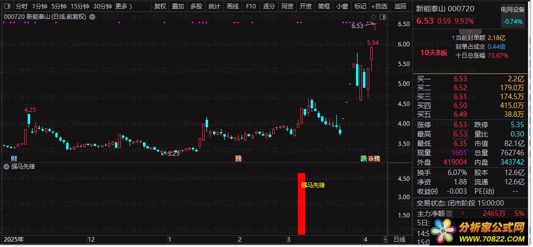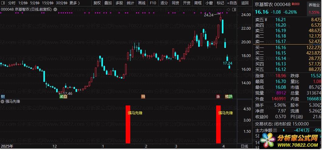 当出现“强马先锋”信号时,表明该股可能已结束整理,进入快速拉升阶段。投资者可结合大盘环境和个股基本面,在信号出现时或次日寻找合适的介入点,并以信号当日阳线的最低价作为止损参考。