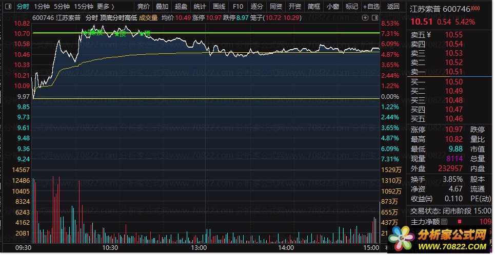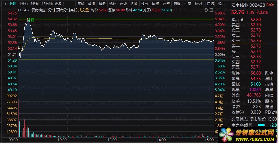 趋势辅助:结合图中的黄色均价线和白色现价线,若现价持续运行在均价之上且突破阻力位,可持股待涨;反之则需谨慎操作。