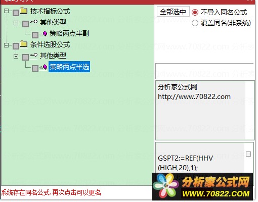 * 关于股票公式时间限制,如果在引入大智慧公式,交易师公式或者飞狐公式的时候,发现公式名称栏是空白的,这时候调整电脑时间到1997年,又能出现公式名称,并且能正常显示,可能是公式使用期限已过。