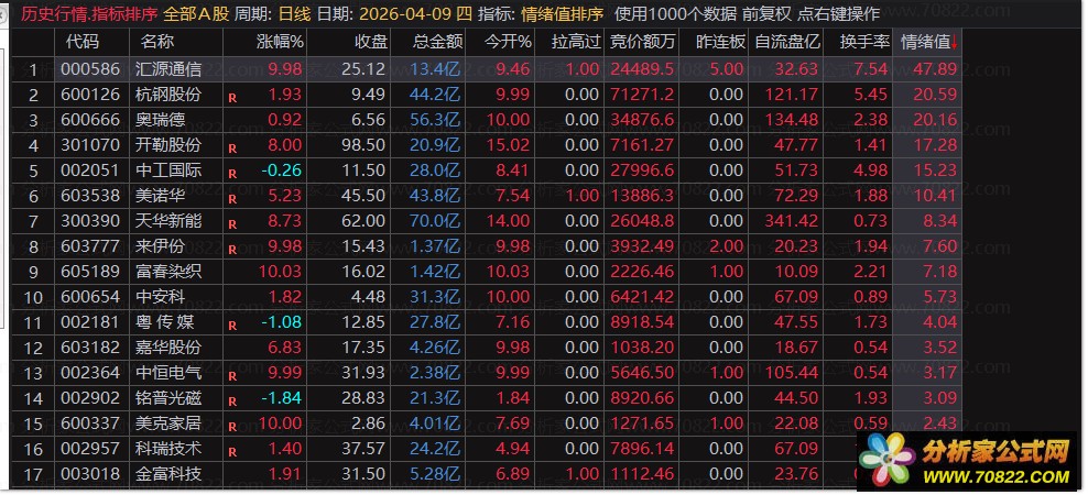 共振验证提升胜率:可叠加“竞价额万”、“换手率”等字段进行综合排序。