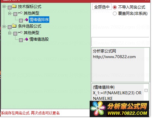 * 关于股票公式时间限制,如果在引入大智慧公式,交易师公式或者飞狐公式的时候,发现公式名称栏是空白的,这时候调整电脑时间到1997年,又能出现公式名称,并且能正常显示,可能是公式使用期限已过。