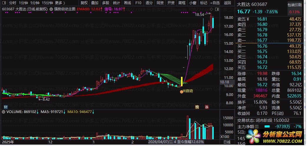 这是主图信号的“过滤器”。它剔除了图形干扰,专门用于盘中或盘后批量筛选。