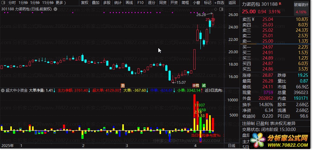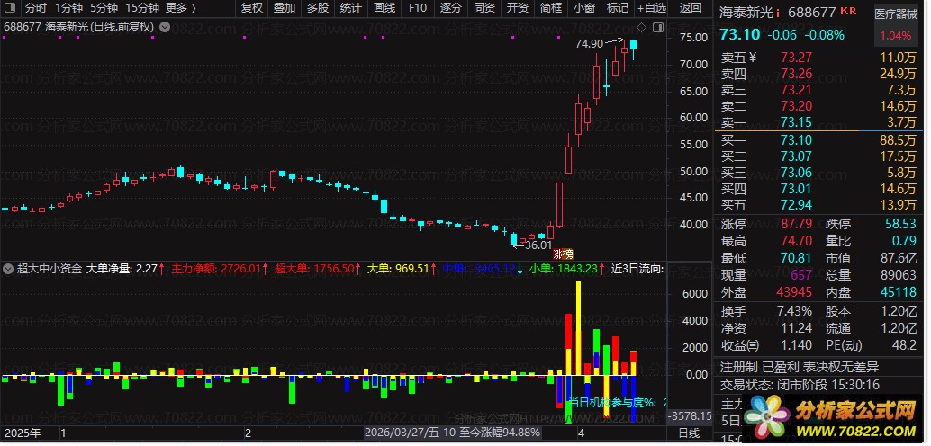 〖超大中小资金流F〗 主力净额+超大单+N日资金流向+机构参与度! 数据用到了L2函数,手机调用DDX或者ZJQDL即可!