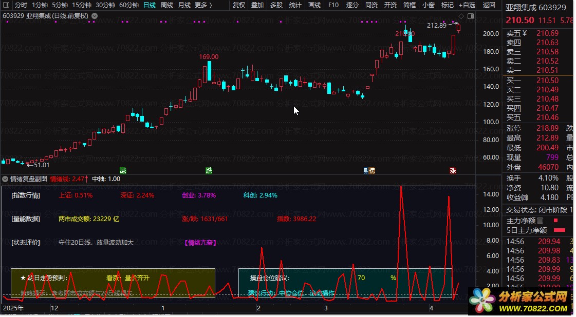 〖情绪复盘副图〗盘中实时情绪值,一眼看穿主力意图! 还在为看不清大盘脸色而烦恼吗?这款“情绪复盘副图”指标,就是你的盘中情绪雷达!它创新性地将上证、深证、创业板、科创50四大指数行情、两市成交额、涨跌家数比等关键数据融为一体,通过内置的智能算法模型,实时计算出市场情绪是“亢奋”还是“冰点”,并对明日走势给出“量价齐升”或“恐慌杀跌”等预判。