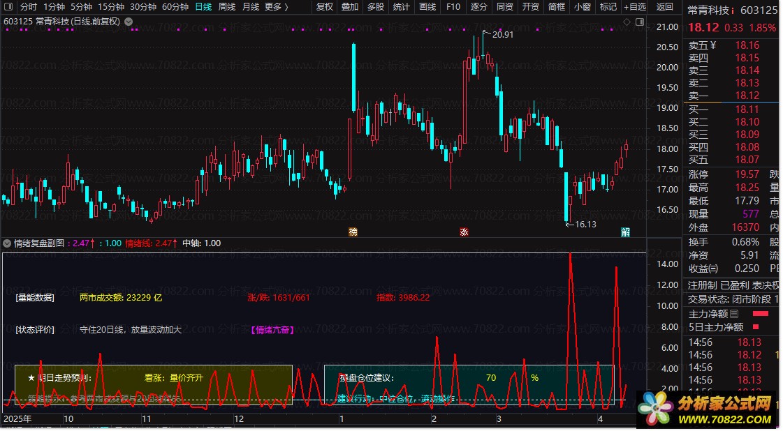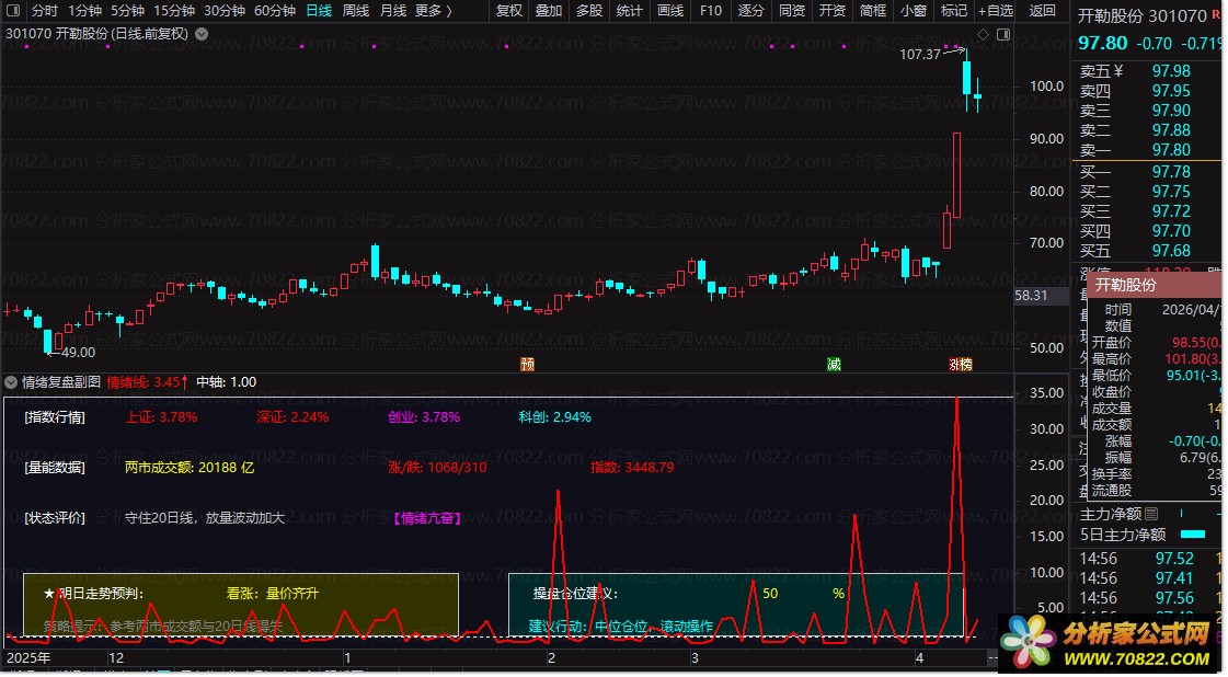 看情绪评分:当显示“【情绪亢奋】”时,市场热情高涨,可积极寻找机会;当显示“【情绪冰点】”时,市场一片萧条,宜防守或空仓等待。