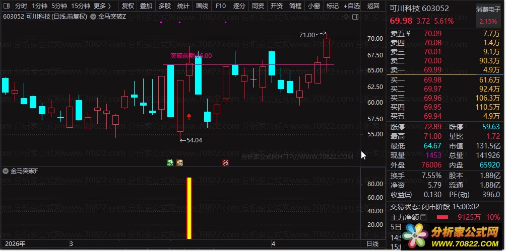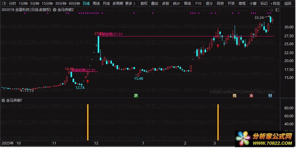 〖金马突破优化版〗涨停回调再突破的实战利器 本指标融合“涨停基因+回调确认+突破验证”三重逻辑,精准捕捉主力洗盘后二次启动的黄金买点。标题融入“股票指标公式”“涨停后回调”“突破信号”等长尾词,提升搜索曝光。