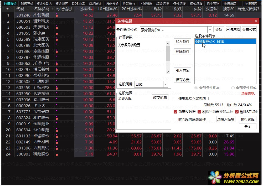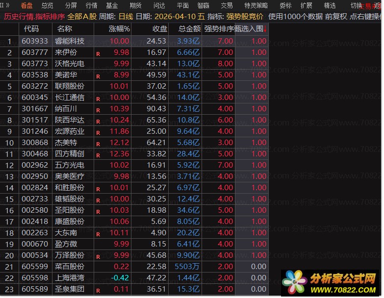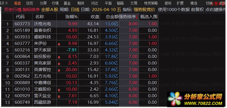 综合考虑:波动+跳跃+热度+筹码+过滤+去新+昨涨等方面。