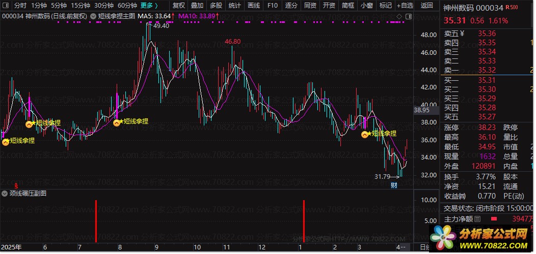 主力控盘确认:结合成交量均线多头排列(UPNDAY)与价格突破,确保是真突破而非假动作。