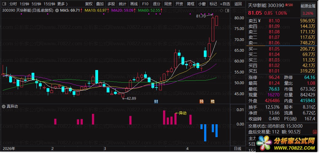 捕捉启动时机:当出现“←异动”信号时,意味着主力资金的流入强度正在加速,是短线介入的绝佳时机。此时若配合股价放量突破关键压力位,成功率更高。