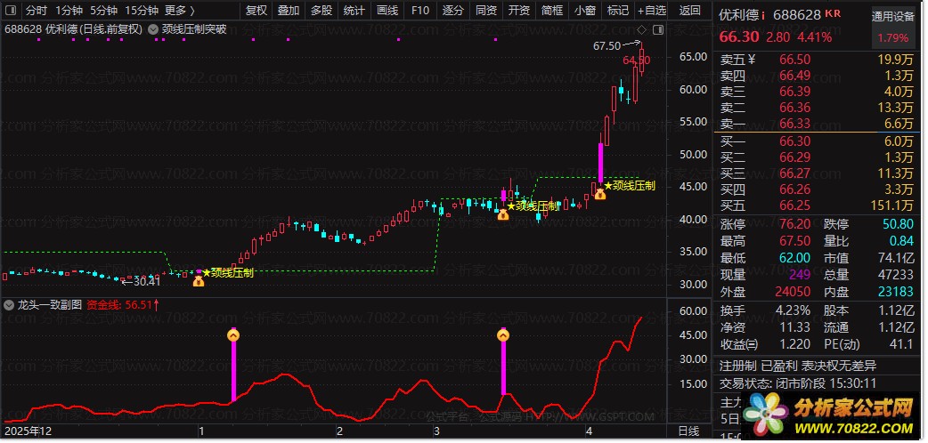 任何技术指标都不是100%成功的“圣杯”。在使用“龙头一致”指标时,务必结合大盘环境和板块热点进行综合判断,并严格设置止损(如跌破信号当日K线最低价),做好风险控制。