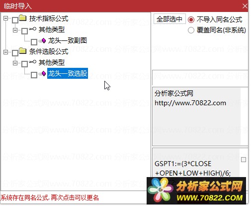* 关于股票公式时间限制,如果在引入大智慧公式,交易师公式或者飞狐公式的时候,发现公式名称栏是空白的,这时候调整电脑时间到1997年,又能出现公式名称,并且能正常显示,可能是公式使用期限已过。