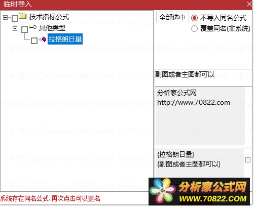 * 关于股票公式时间限制,如果在引入大智慧公式,交易师公式或者飞狐公式的时候,发现公式名称栏是空白的,这时候调整电脑时间到1997年,又能出现公式名称,并且能正常显示,可能是公式使用期限已过。