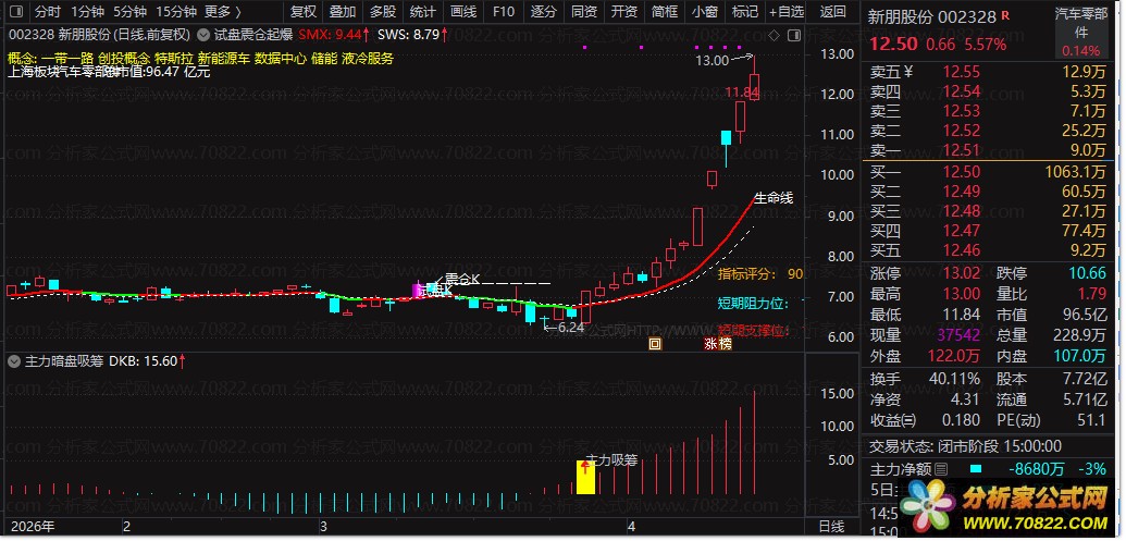 3、超买超卖与资金流入信号:借鉴KDJ指标的RSV算法,并结合其变化率(BH9),来捕捉短期内资金加速流入的信号。当BH9值由负转正并出现较大幅度跃升时,往往是主力资金开始积极介入的迹象。