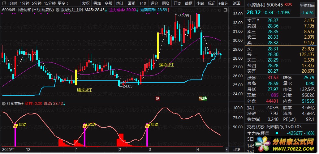 用紫红共振找主力踪迹,用强龙过江等确认信号