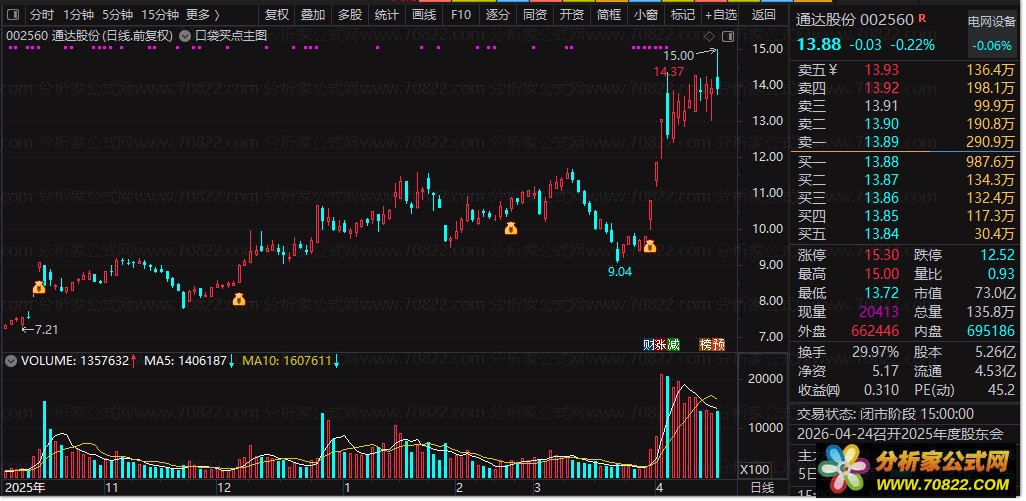 本公式无未来函数、信号稳定,是通达信均线共振+量能选股的实战型主图指标,专注低风险口袋买点捕捉,新手也能轻松上手抓牛股。