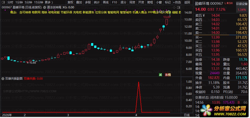 双雄共振擒牛副图是专为通达信打造的趋势共振类副图指标,融合5/10/28日均线、EMA平滑算法、量价过滤、标准差风控等核心算法,剔除ST、科创板、创业板标的,精准捕捉主力资金共振信号。指标通过多重均线趋势+量能验证+风险过滤,锁定强势启动节点,无未来函数、信号不漂移,适配短线波段操作,是散户抓主升浪的高效利器。