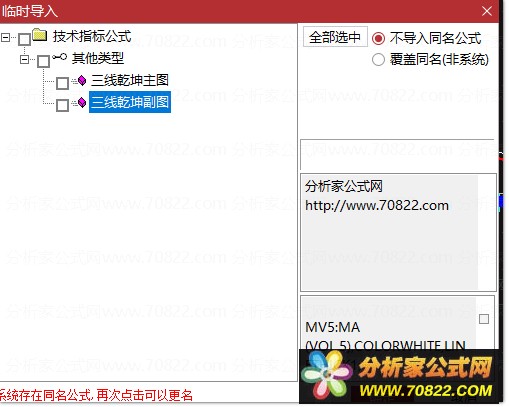 * 关于股票公式时间限制,如果在引入大智慧公式,交易师公式或者飞狐公式的时候,发现公式名称栏是空白的,这时候调整电脑时间到1997年,又能出现公式名称,并且能正常显示,可能是公式使用期限已过。