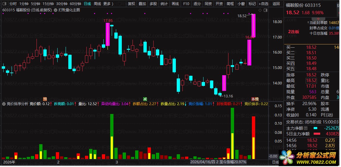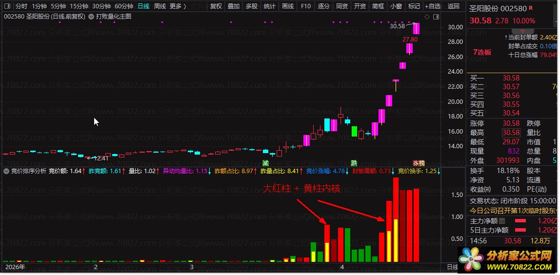 3、黄柱内核:核心异动信号。当柱子中间出现黄色实心块,意味着当日竞价金额达到过去5日均值的2倍以上,属于极端资金异动,往往预示短期爆发力。