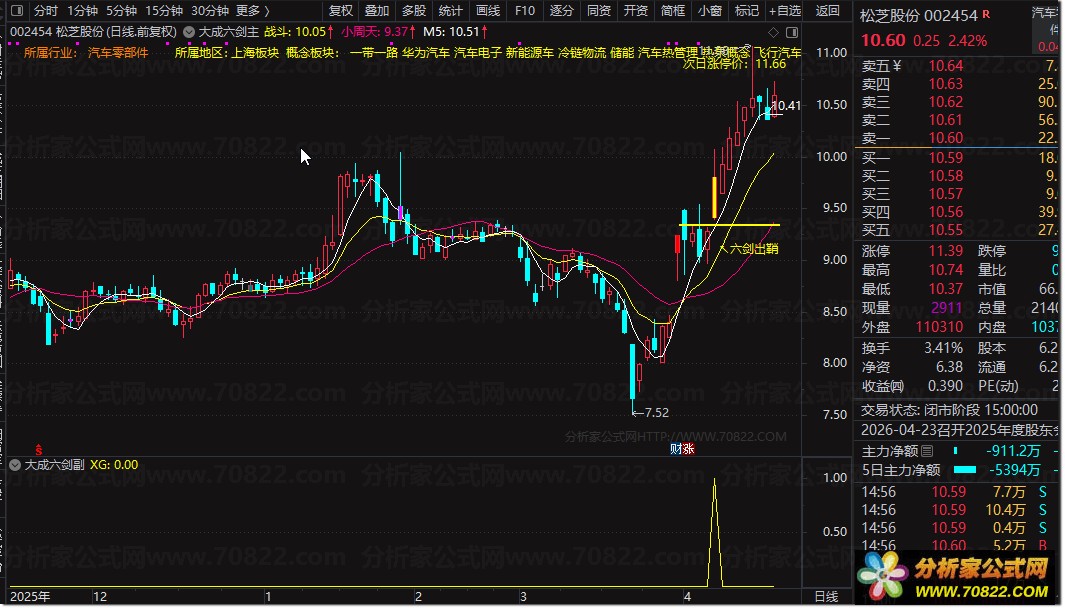 〖大成六剑〗指标套装,过线定乾坤不追高不打板 主图/副图/选股 无未来函数 指标使用说明与实战技巧:
