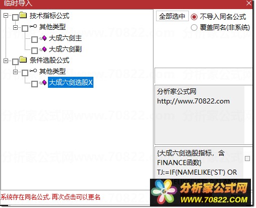 * 关于股票公式时间限制,如果在引入大智慧公式,交易师公式或者飞狐公式的时候,发现公式名称栏是空白的,这时候调整电脑时间到1997年,又能出现公式名称,并且能正常显示,可能是公式使用期限已过。