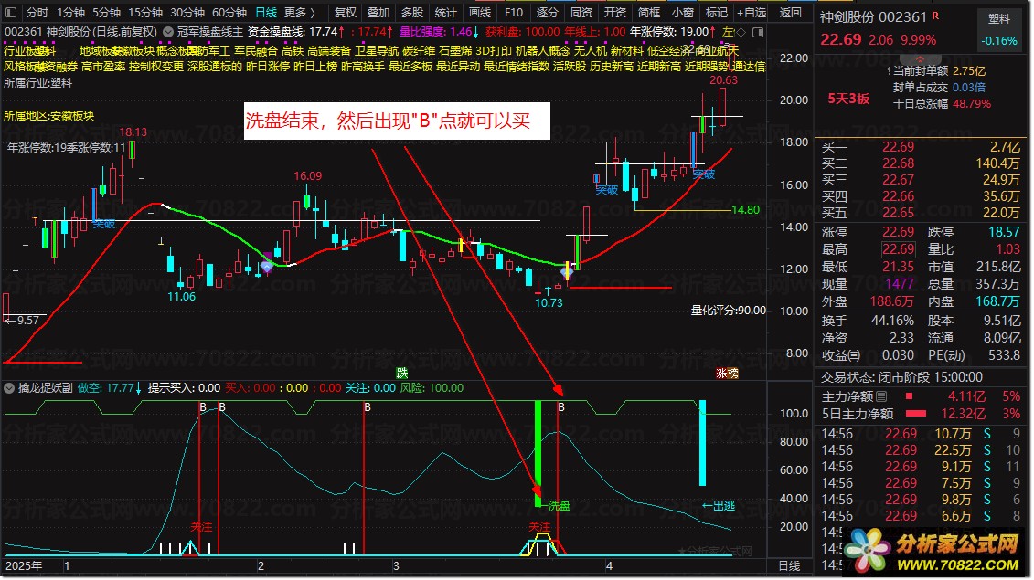 〖擒龙捉妖〗综合买卖系统,黑马起爆与主力洗盘结束信号实战指标 公式名称