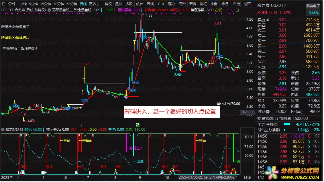 “←筹码进入”增强持股信心,“←出逃”则预警减仓离场;