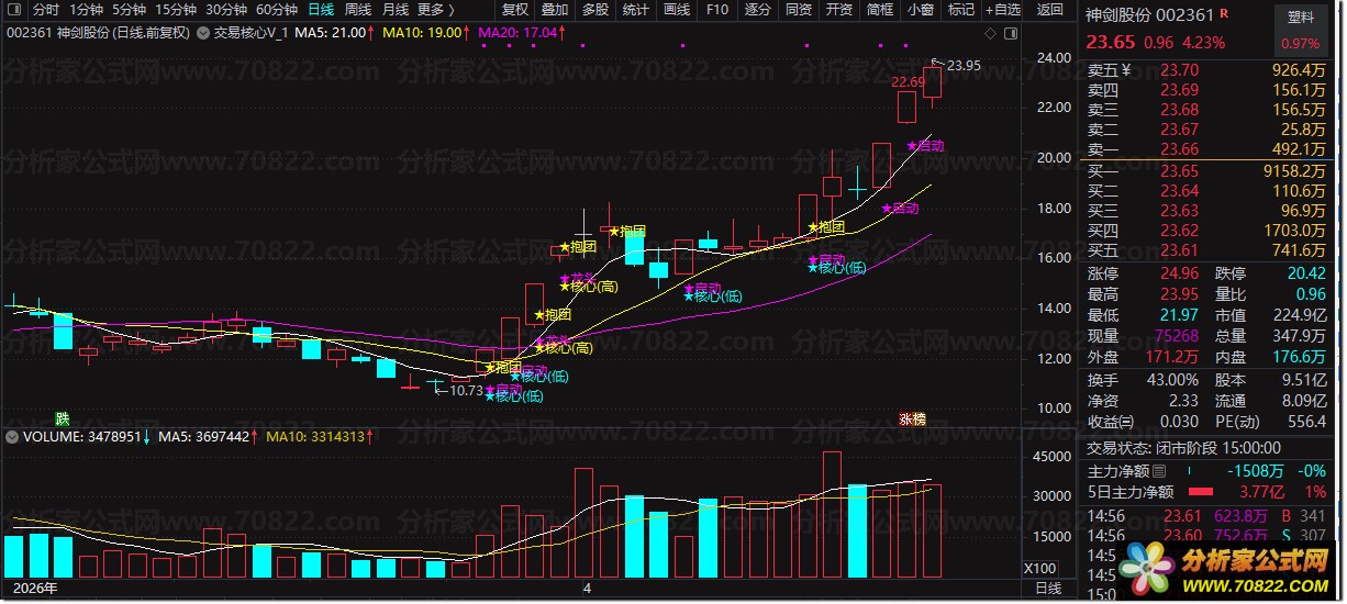 很多的操作上的细节,各位朋友也可以在实战中找到相应的秒招,该公式就是让你远离杂毛和跟风票,聚焦热点板块里的资金重点青睐的票,而提高你的选股能力和交易胜率。