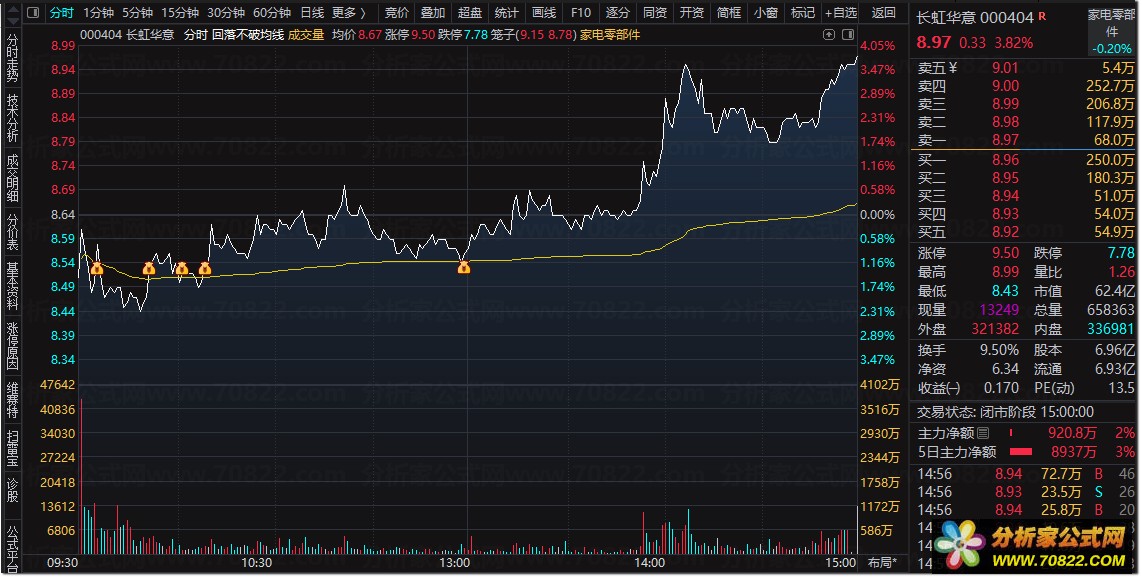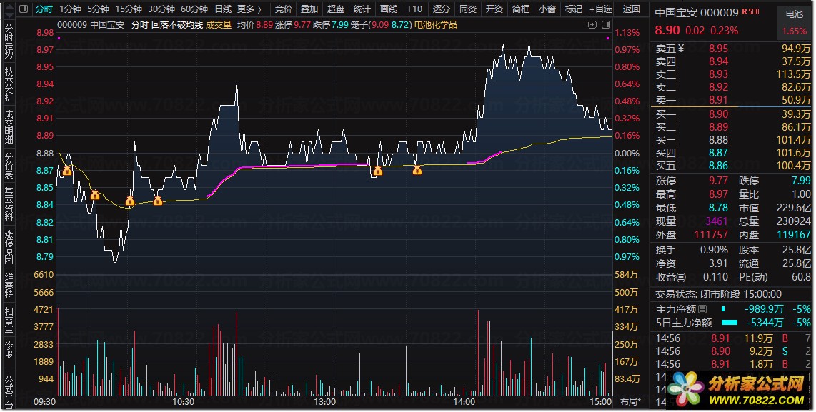 〖回落不破均线〗指标套装,冲高回马探深潭,水破平波势未酣。分时回落不破均线的选股【形态一】 今天主要和大家分享如何利用通达信软件,编写一个能够选出分时图中股价回落但不跌破均价线的指标公式。其实,这个思路和我们平时在日线级别分析股票是相通的,只不过这次我们将分析的周期精确到了1分钟级别。