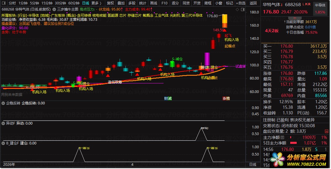 试盘 → 洗盘 → 起飞 → 起爆 完整跟庄逻辑。