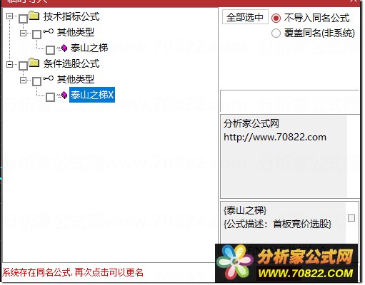 * 关于股票公式时间限制,如果在引入大智慧公式,交易师公式或者飞狐公式的时候,发现公式名称栏是空白的,这时候调整电脑时间到1997年,又能出现公式名称,并且能正常显示,可能是公式使用期限已过。