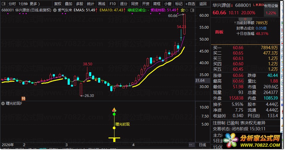 【曙光初现】底部增强版 副图选公式 ,技术形态识别思路逻辑 技术分析辅助工具(附源代码) 支持手机电脑通用 公式基于趋势与动量突破原理设计。
