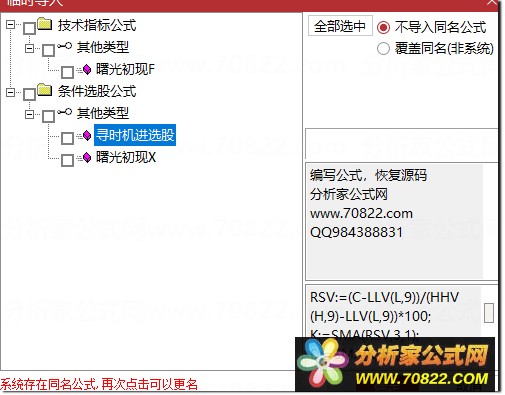 * 关于股票公式时间限制,如果在引入大智慧公式,交易师公式或者飞狐公式的时候,发现公式名称栏是空白的,这时候调整电脑时间到1997年,又能出现公式名称,并且能正常显示,可能是公式使用期限已过。
