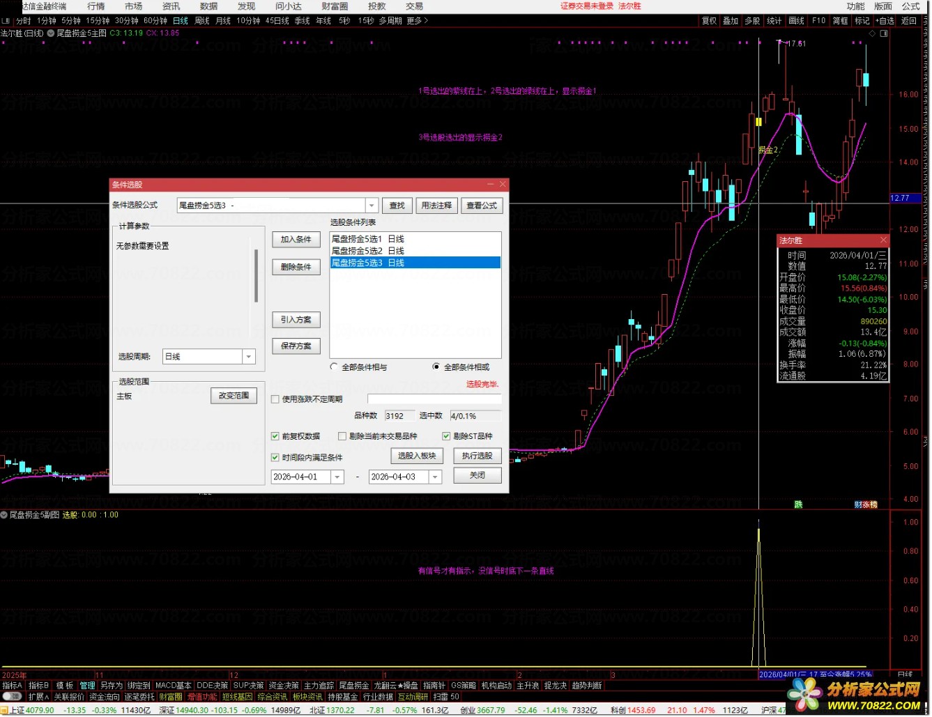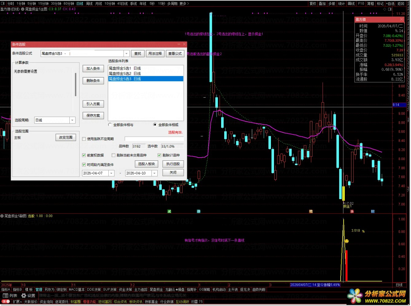 通达信〖尾盘捞金〗尾盘买高胜率 今买明卖 套装简介