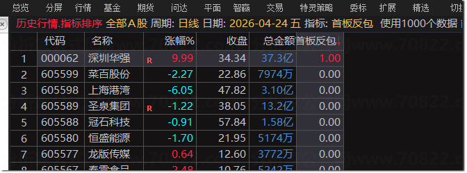 实战技巧:当副图出现黄色柱体及“首板反包”红色文字信号时,结合当日热点板块择优介入。建议将信号K线最低价设为止损位,严格执行短线快进快出的交易纪律。
