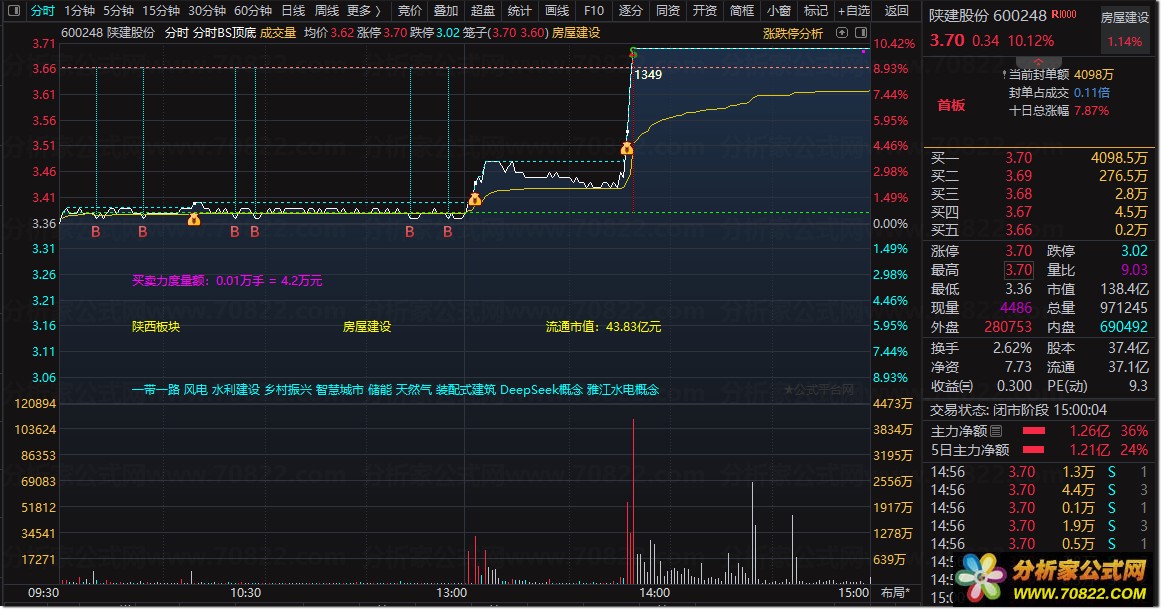 指标中B点明确提示入场时机,S点明确提示离场时机。同时,该指标界面还贴心集成了股票所在的板块、题材概念以及流通市值等关键数据,方便投资者综合判断。