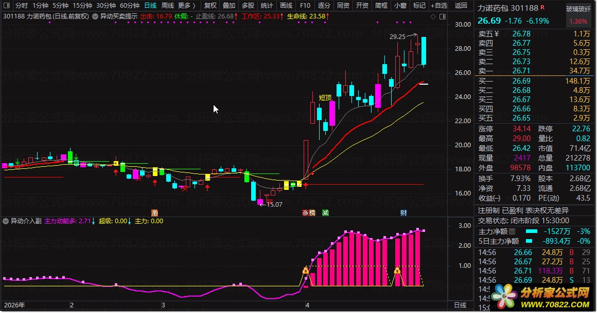 通达信〖异动买卖提示〗主图指标 线上操作线下休息精准捕捉突破信号 指标使用说明: