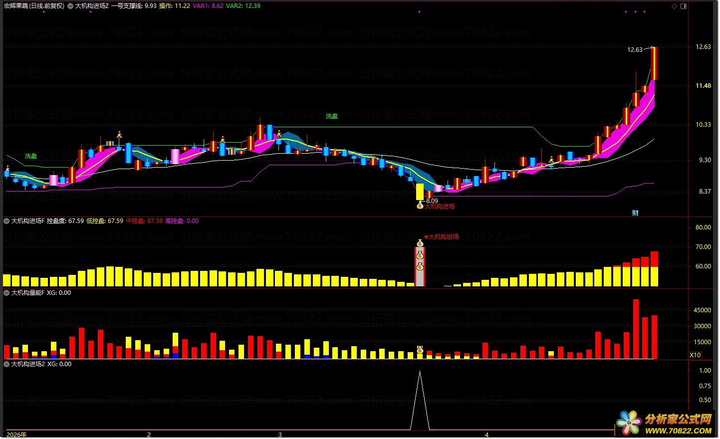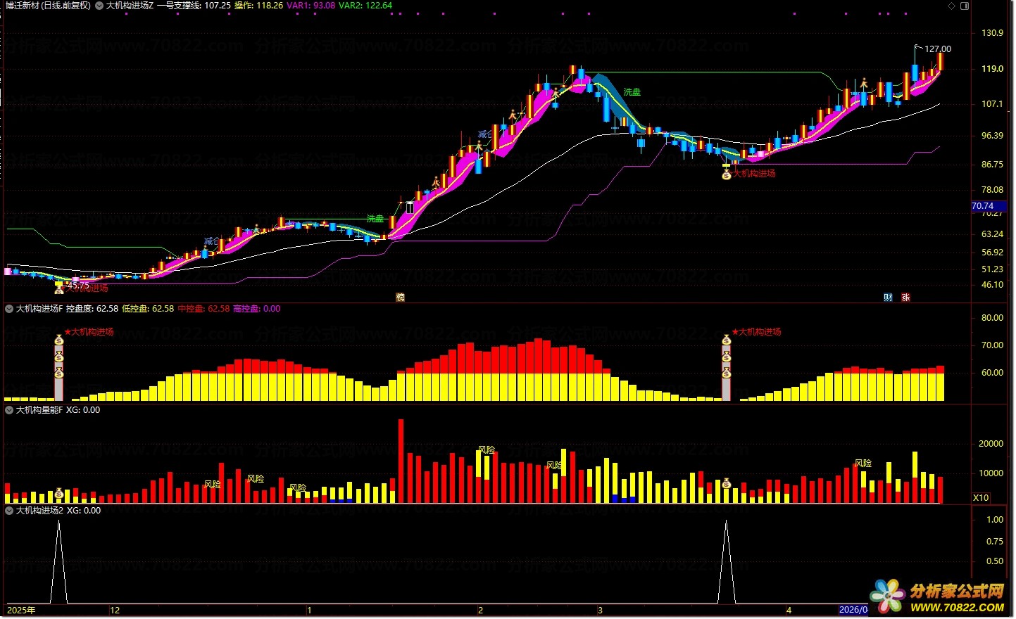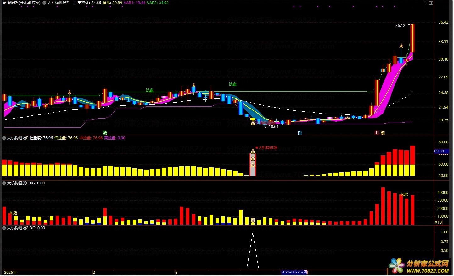 〖2026大机构进场〗主图/副图/选股指标,大机构控盘信号为核心抄底启动信号 指标说明: