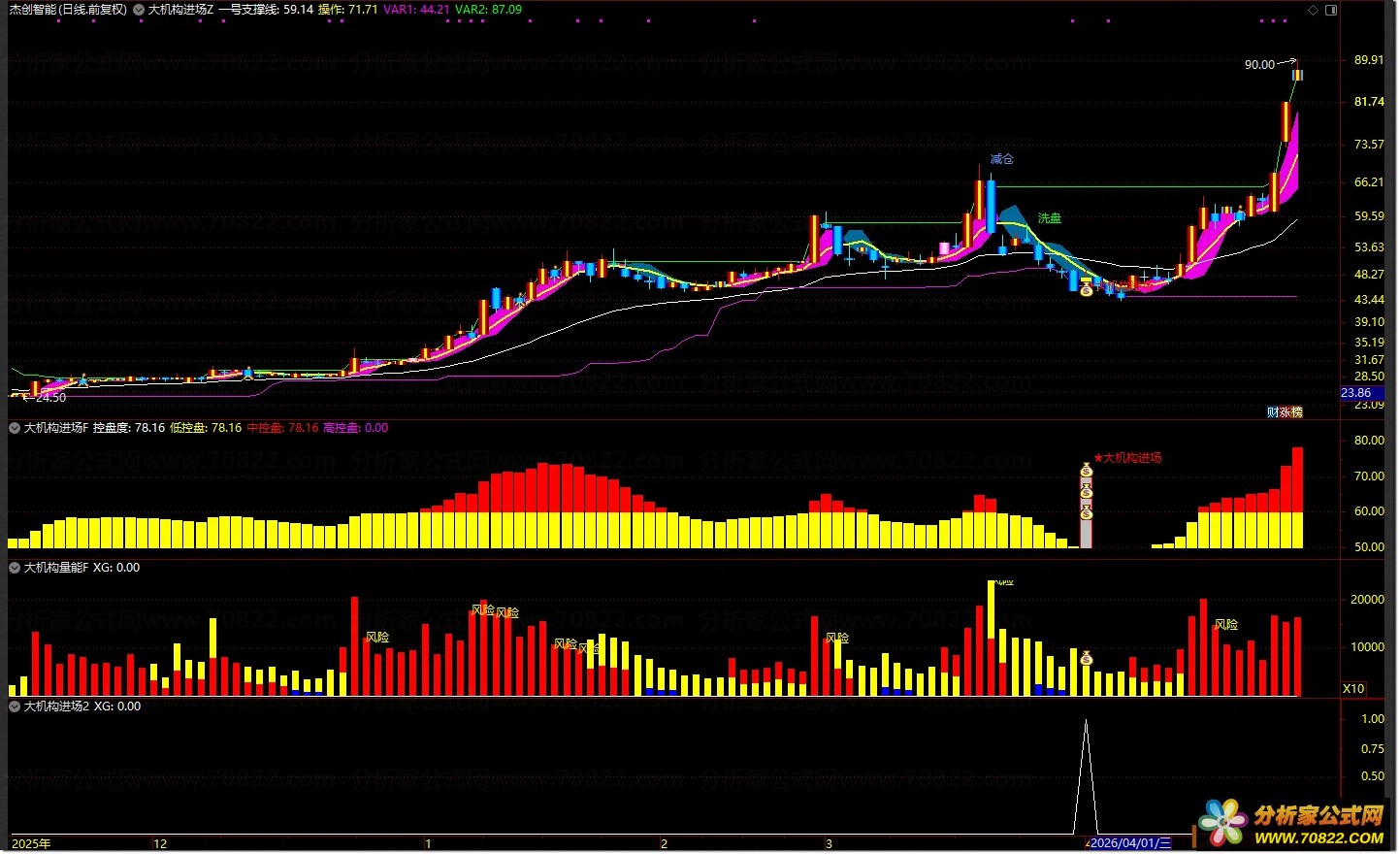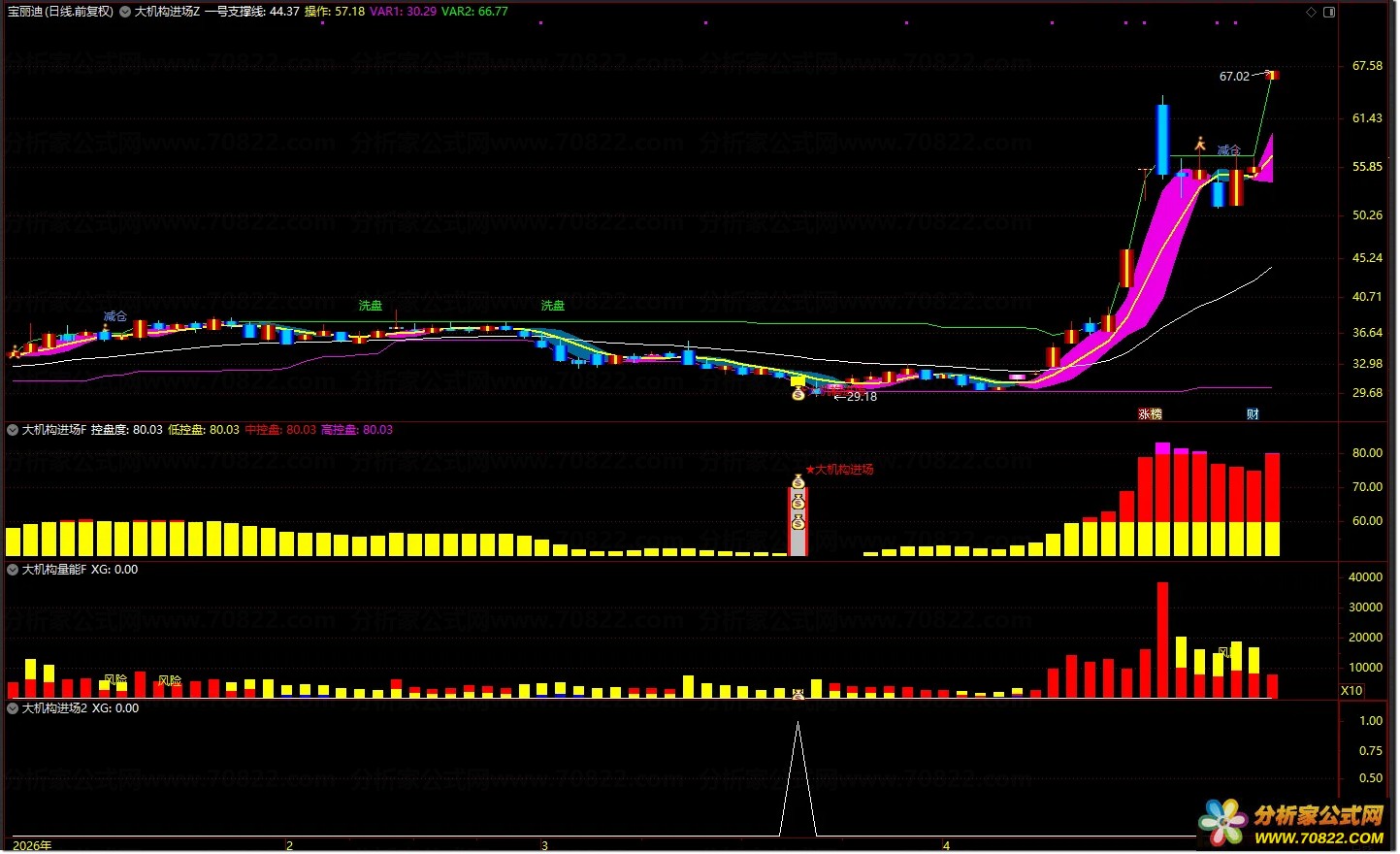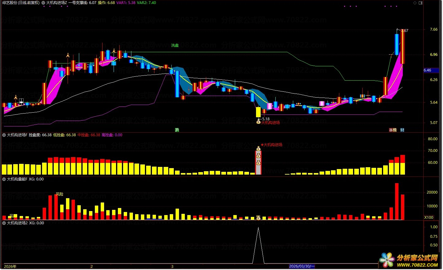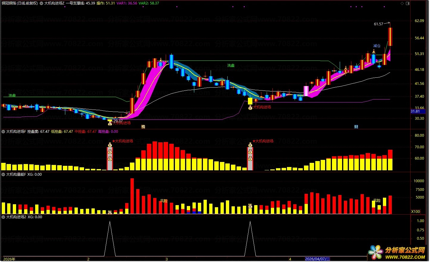〖2026大机构进场〗主图/副图/选股指标,大机构控盘信号为核心抄底启动信号 指标说明: