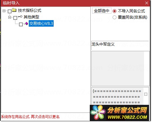 * 关于股票公式时间限制,如果在引入大智慧公式,交易师公式或者飞狐公式的时候,发现公式名称栏是空白的,这时候调整电脑时间到1997年,又能出现公式名称,并且能正常显示,可能是公式使用期限已过。