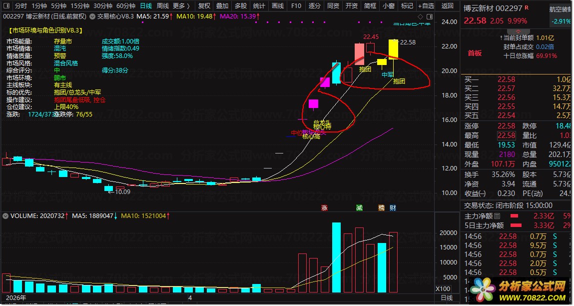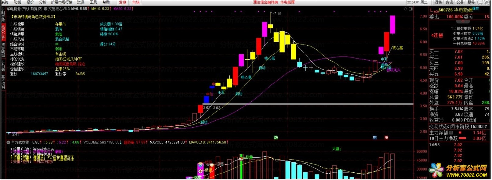 3、用K线的颜色代替了冗余的文字介绍,只在首次出现概念定义时在K线下方标注,相同定义的不再累述而是采用同样的颜色进行代替。还有一些改动都是为了让定义更加接近实际,可大大提高1进2,2进3的龙头核心的认定。