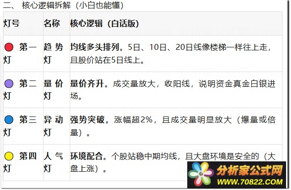 一、 为什么你需要“四灯系统”?很多朋友亏钱,是因为在下跌趋势里抄底,或者在缩量阴跌里死扛。为了解决这个痛点,我设计了四个维度的“信号灯”: